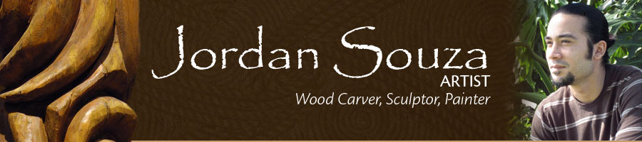 For the world to take the Art of Hawaii seriously, we must move our art into a more contemporary context. By studying ideas and cultural practices of the past, we can push Native Hawaiian Art forms into the future. My work incorporates many ancient symbols and forms which I try to incorporate into my art. I try to express and show these things with mixed media. The woodcarving that I do is aimed at honoring the Hawaiian Culture, with a fresh abstract perspective. I also choose to use woods that would otherwise be discarded for green waste. I like to think that I give wood the chance to speak and tell a story one last time before it is absorbed back into the earth. -Jordan Souza |